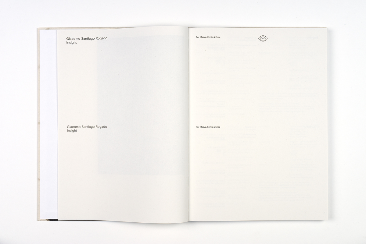 Insight brings together recent works by the painter Giacomo Santiago Rogado www.rogado.com (b. 1979). Spanning the past five years of his oeuvre, the selection focuses on the series Intuition, Coalescence and Introspection, alongside a series of large-scale installation works. This new publication offers the reader an intimate encounter with Rogado’s finesse for seductive form. As vibrant in their texture as they are in tone, his works command attention of a visceral nature, luring in the viewer and capturing the imagination. The artist’s thematic engagement with deceleration, contemplation, and meditation is amplified in his choice of materials – including oil,